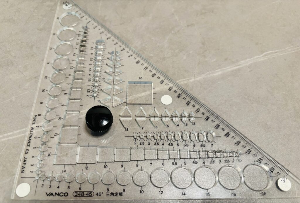 製図試験といえば、バンコの三角定規は定番ですね。初めて受験される方はなんだこの見慣れない三角定規はと思ったと思いますがこの三角定規、めちゃめちゃ有能です!