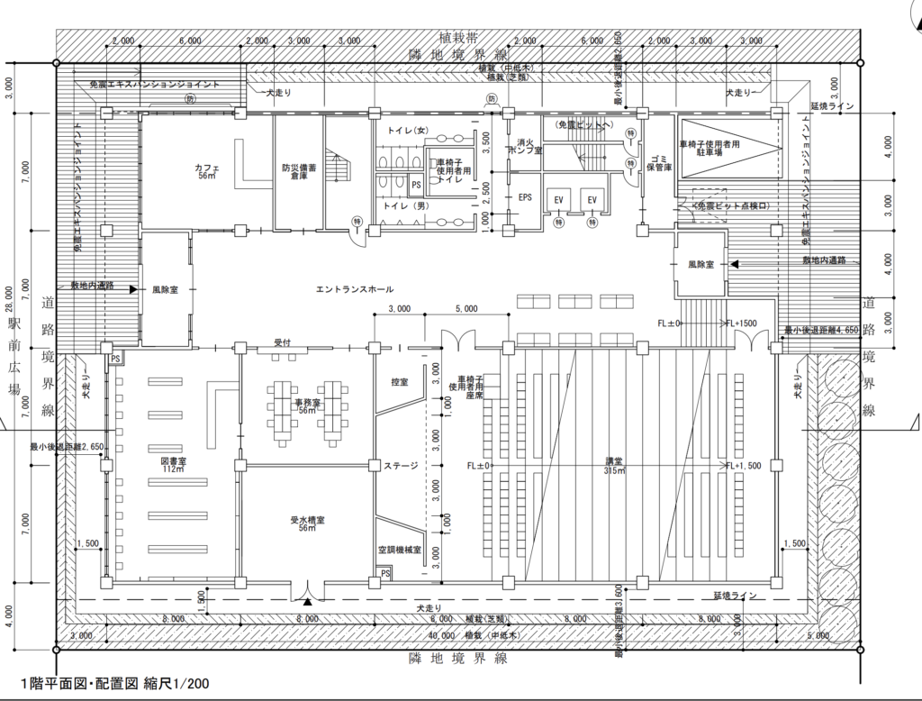 例えば、図書館で図書の搬入ルートと利用者の動線が交錯した場合はそれだけで大幅な減点となります。(おそらくランクⅢです)