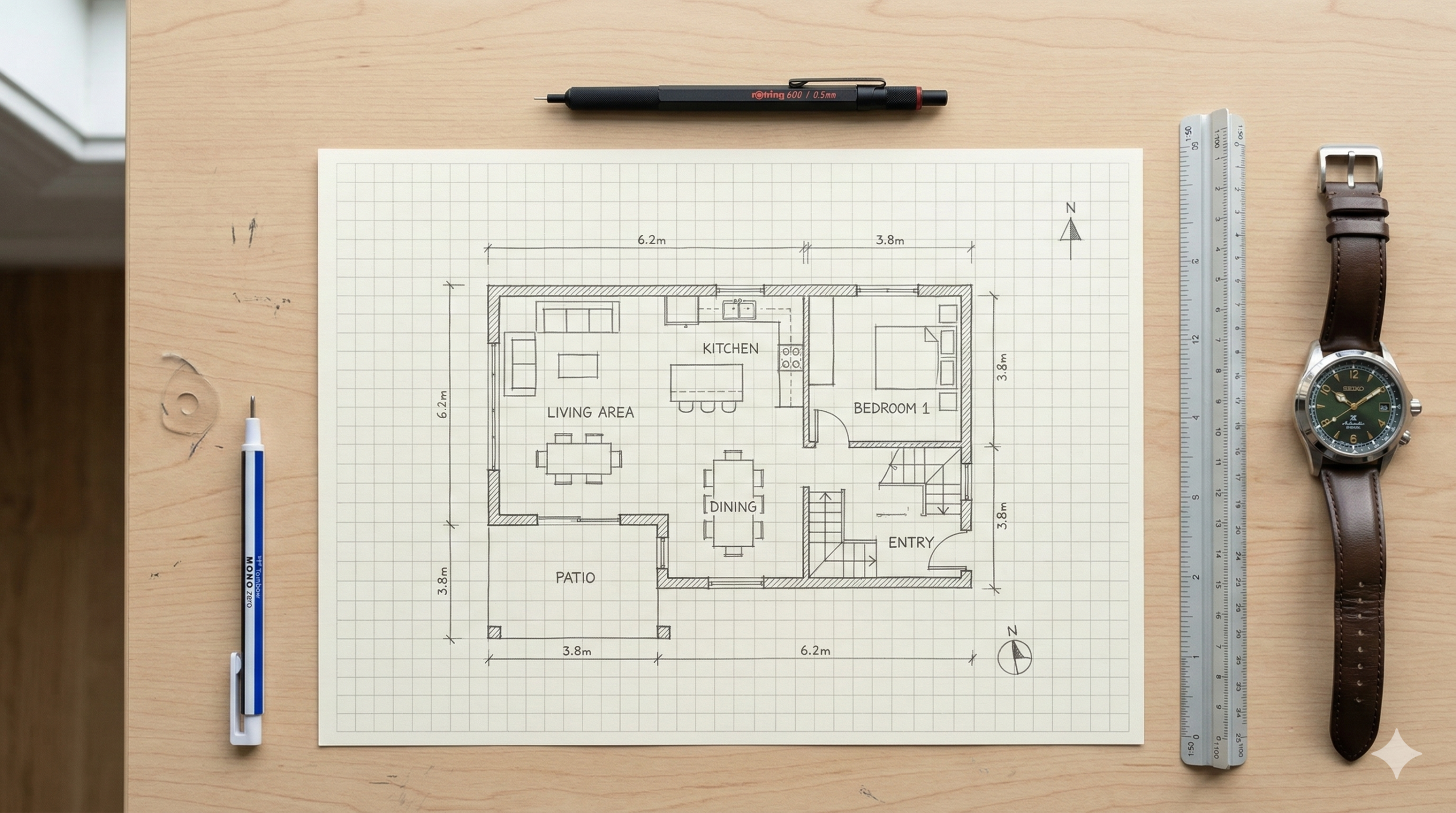 複雑なプランを一生懸命ひねり出しても、作図中に柱位置を間違えたり、エスキス用紙を何度も見返して時間をロスしたりしては本末転倒です。